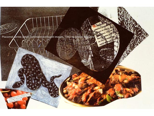 This is a quick overview of my artworks from 1989 - 2017. After I left the Interlake Mobile Art Center, I was lucky to take residence at the Art Space live-in studio. I also rented a space at the North Nassau print studio one floor down, then subsequently rented a space at the Manitoba Printmaker's Association. From 1990-92 I was travelling and teaching at various locations. Once I returned to Manitoba in 1992, I lived in my studio for a year on Albert St. where I produced the placemat series. This series was influenced by my investigations into vedant philosophy and meditation. I went to India in 1994, and produced the Icon Show interviews. In 1995 and 1996 I was able to get training in web site development etc. and later got a job which took up a lot of time. I turned towards documenting my house buying and renovating projects, some website design for family and friends, some traveling but not as much concentrated art production given I was working full time.